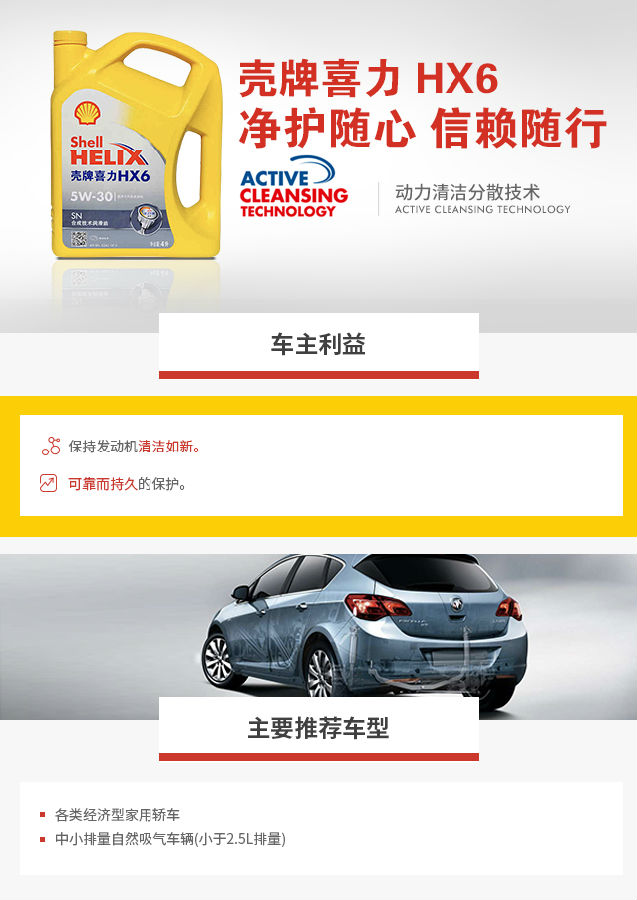 型号:喜力HX6 4L 5W-30 SN 机油分类:半合成机油 机油级别:SN 容量:4L