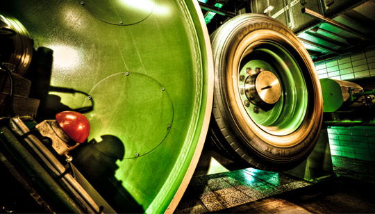 您轮胎的橡胶中混合了高达30种原料,原料的比例取决于轮胎的性能目标。它是由多种类型的橡胶,填充料及其它原料构成,在被称为班伯里密炼机的巨型搅拌机中把它们混合在一起,生产出一种将用于压延的黑色的粘性的胶料。