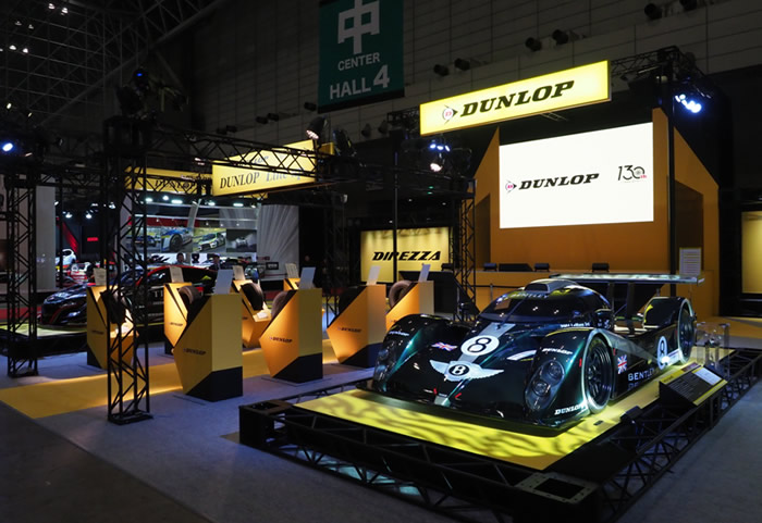本次展台分为4个区域,其中 “历史展区”展出了与邓禄普有着深厚历史情结的宾利赛车,并通过宣传栏介绍了邓禄普品牌130年间的历史。另外,“赛车运动展区”展出了NSX GT500等参赛车辆以及DIREZZA运动系列轮胎。在运动轮胎的研发制造方面,邓禄普为赛车和改装车提供了优质解决方案。中间通道部分设置了邓禄普 “轮胎阵容展区”,最新发售的“ENASAVE”系列以及冬季热卖的“WINTER MAXX”系列轮胎重磅亮相,其在抓地性能、操控精准度、稳定性等方面尽展实力,整个展台以邓禄普品牌的黑色和黄色为主色调,远远望去,设计大方新颖,引人注目,为参观者呈现了一场完美的视觉盛宴。
