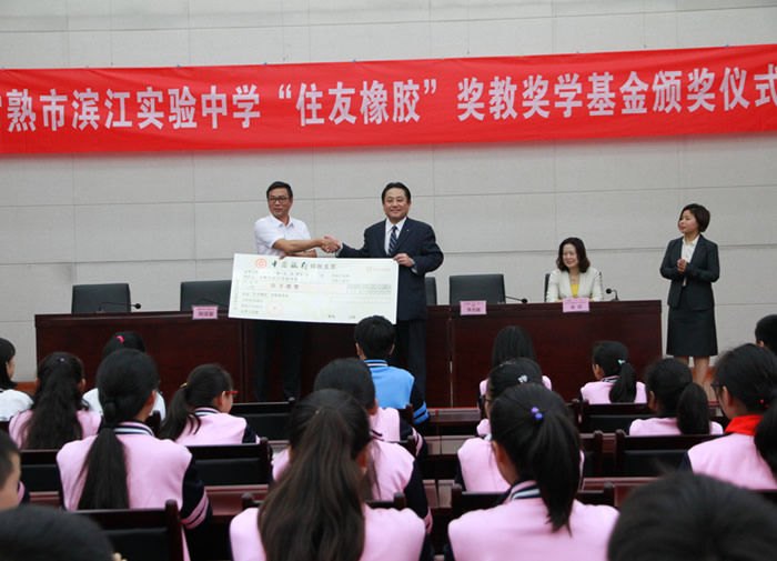 教育事业的发展不仅关系着孩子们的未来,更牵动着整个社会将来的发展方向。推动教育事业不断前进,不仅需要学校和家长的努力,更少不了来自社会各界的支援。住友橡胶(中国)有限公司为了带动当地经济与教育同步蓬勃发展,于2016年设立了“住友橡胶奖教奖学”基金,并在今年第二次启用基金,用于鼓励常熟市滨江实验中学的优秀师生们继续奋发进取。